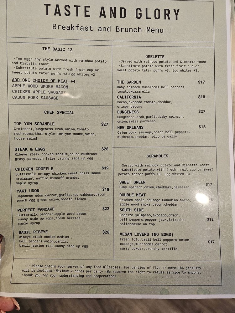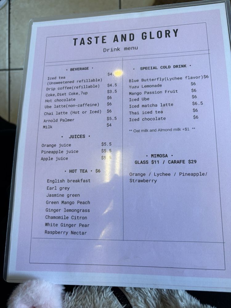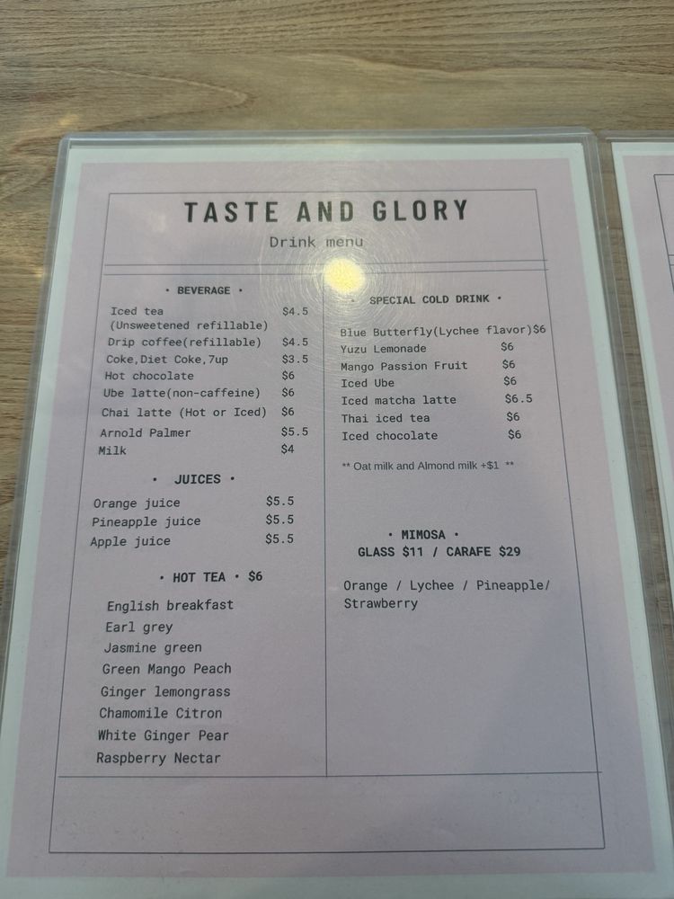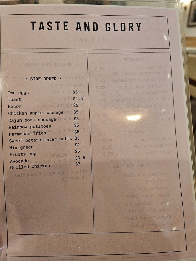 Taste and Glory Menu