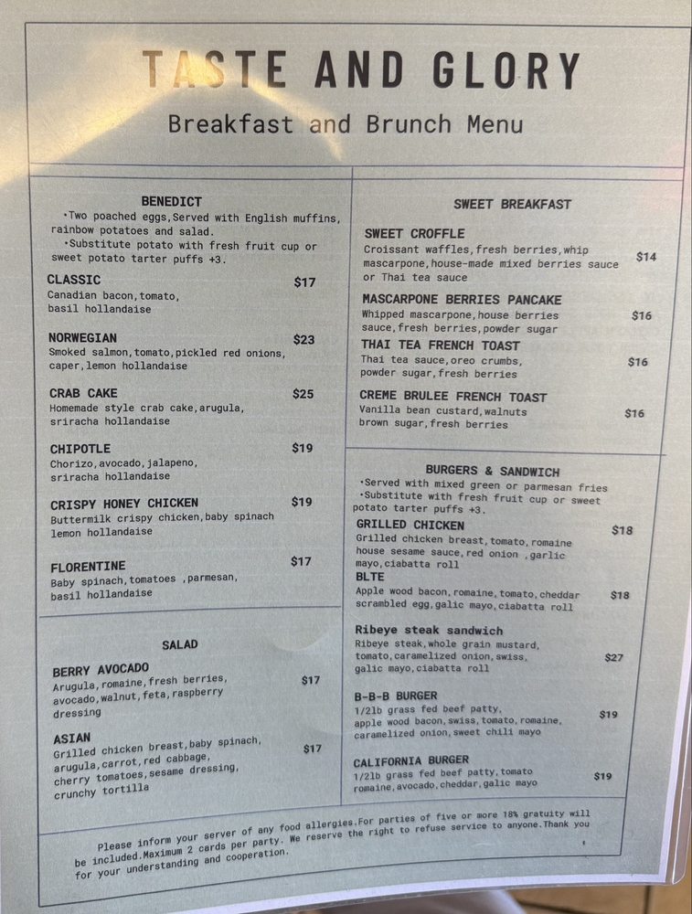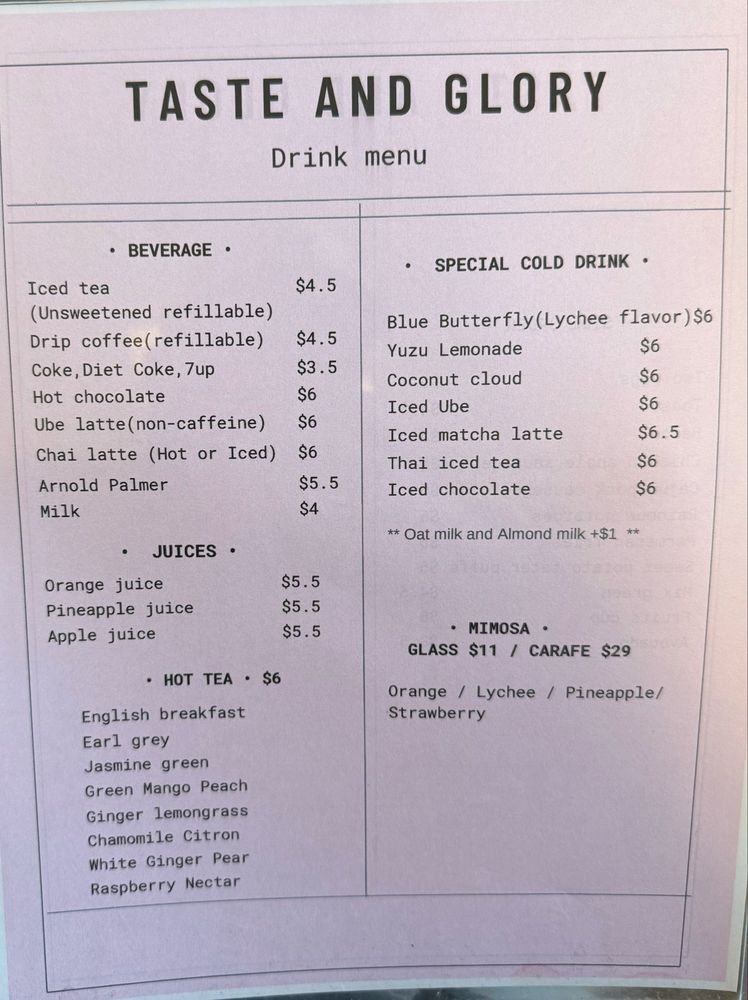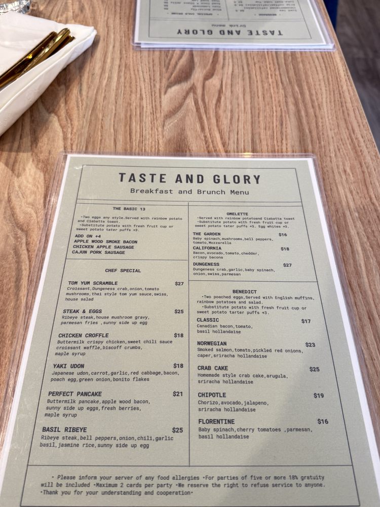 Nestled in San Mateo, California, Taste and Glory redefines Asian fusion and American brunch. With a vibrant atmosphere and a menu that resonates creativity, this restaurant offers an extensive selection of inventive dishes that cater to diverse palates.
